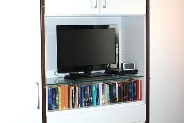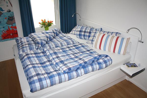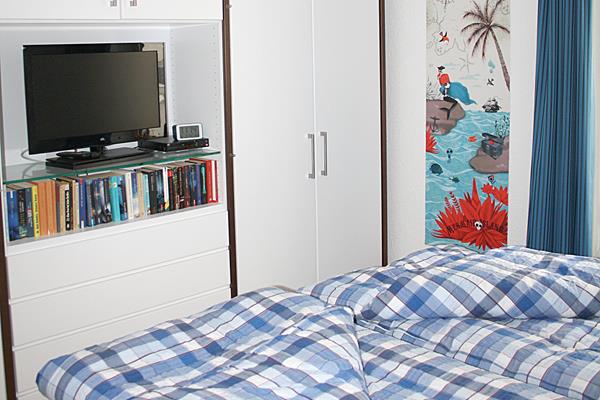 Im Schlafraum befindet sich ein Doppelbett von 190 x 200 cm mit Kaltschaummatratze. Das Fenster ist mit Insektenschutz ausgestattet, ein DVBT-Fernsehgerät und ein DVD-Spieler stehen zur Verfügung.